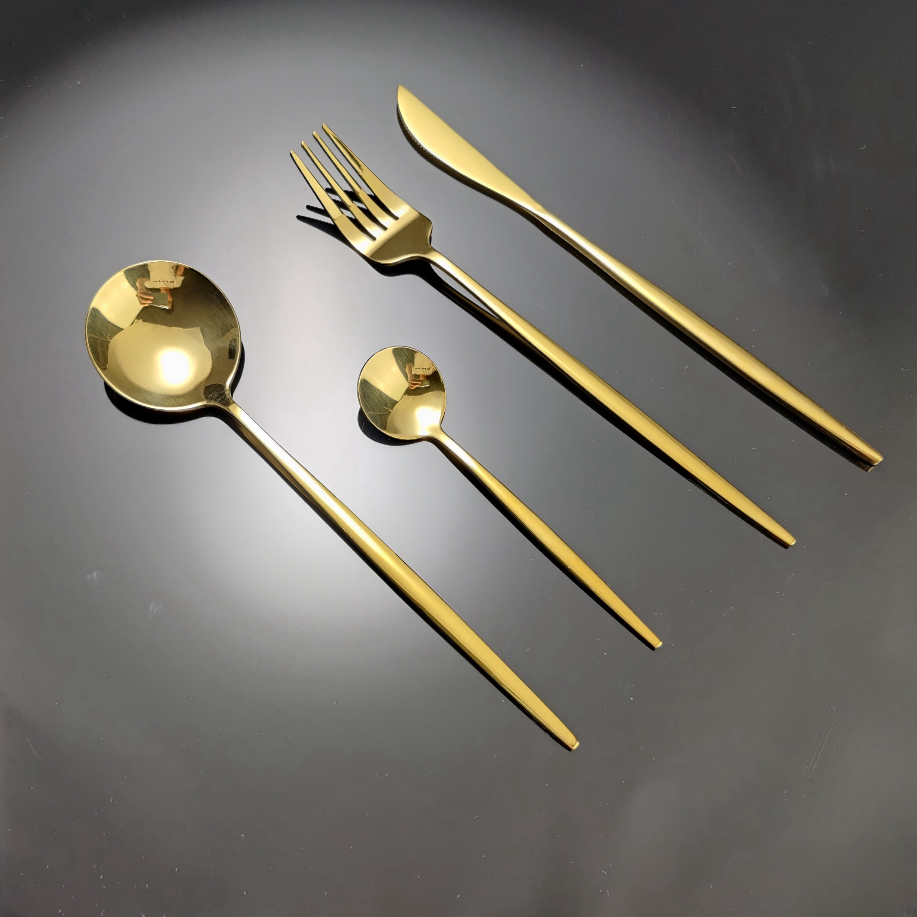 To ensure the set was dishwasher-safe and durable for long-term use, we utilized a high-end PVD (Physical Vapor Deposition) titanium gold plating process. This provided a premium finish that far exceeds standard plating in both aesthetics and wear resistance.