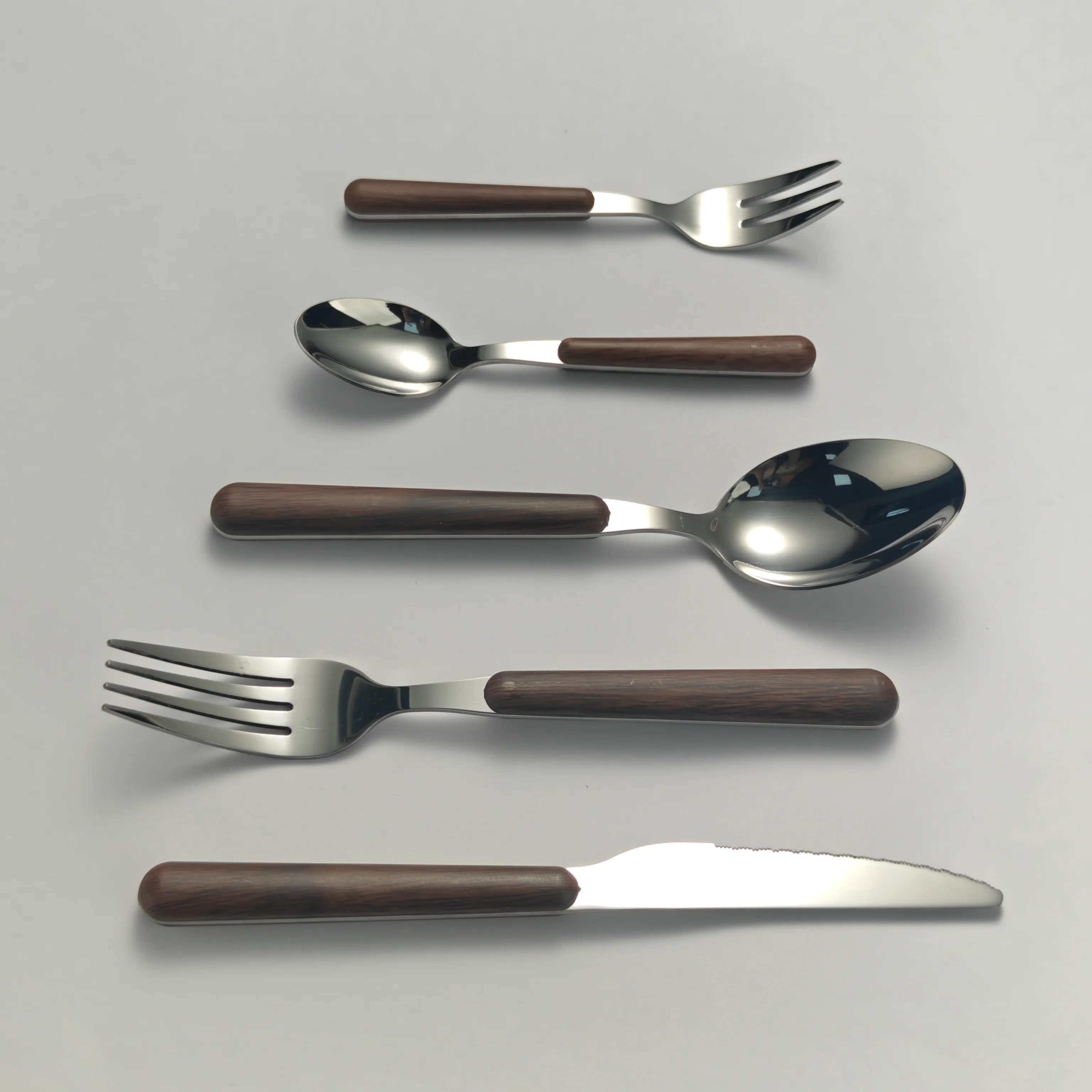 Großhandel Holzmaserung Besteck kombiniert langlebig 18/0 Edelstahl mit eleganten Holzmaserung Griffe für einen stilvollen, komfortablen Griff. Perfekt für Zuhause, Restaurants oder Catering. Kontaktieren Sie uns heute für Anfragen!